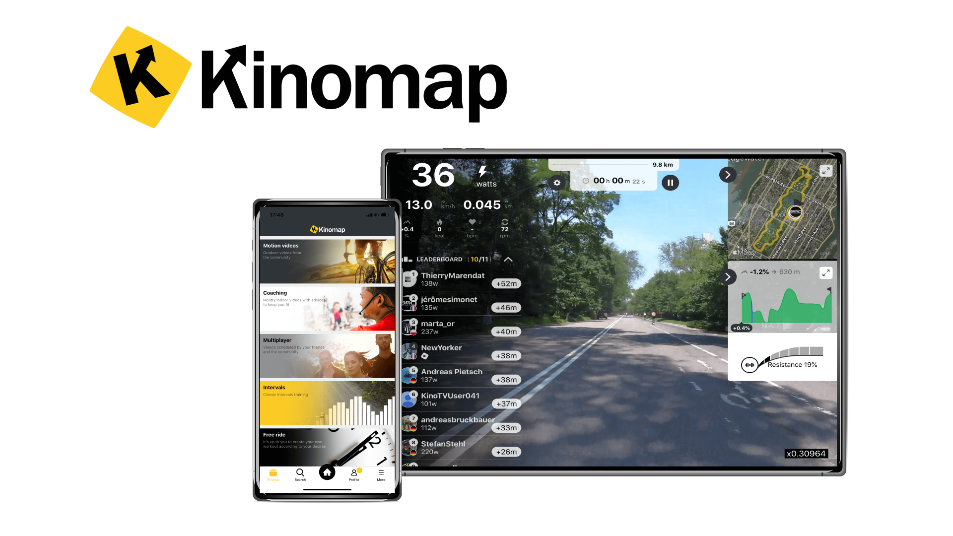 Η εφαρμογή Kinomap κάνει την προπόνηση στο διάδρομο, στο ποδήλατο, στο ελλειπτικό ή στην κωπηλασία σας, πιο διασκεδαστική από ποτέ.Επιλέξτε ένα βίντεο και παρακολουθήστε την κίνησή σας μέσα στο χάρτη επιλεγμένων διαδρομών και των σχετικών βίντεο που τις συνοδεύουν. Η εφαρμογή θα αλλάζει αυτόματα την κλίση ή την αντίσταση του εξοπλισμού σας, ώστε να ταιριάζει με τη διαδρομή που επιλέξατε!