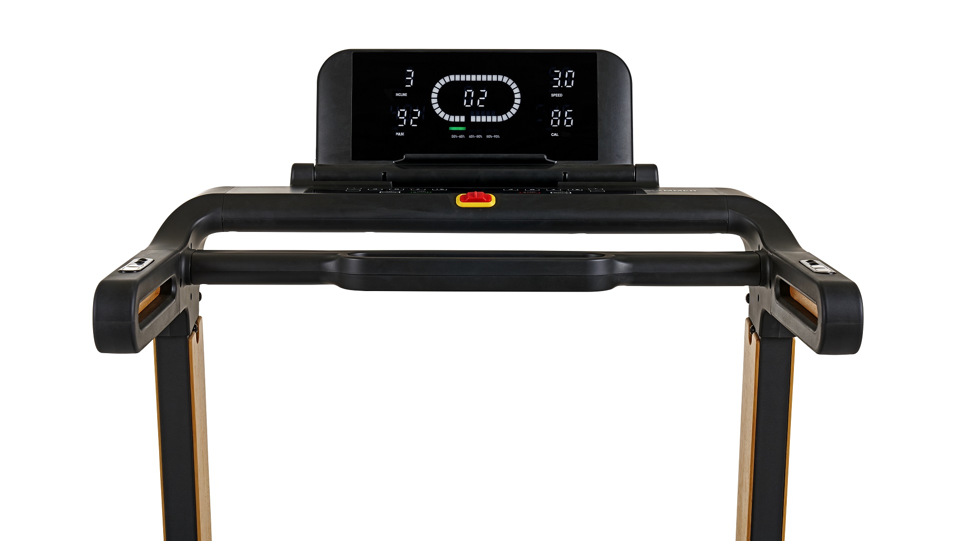 Με άνετες διαστάσεις 152 x 50 cm, η εξαιρετικά ευρεία επιφάνεια τρεξίματος προσφέρει άφθονο χώρο για μια ασφαλή και φυσική εμπειρία προπόνησης. Η υψηλής ποιότητας αντικραδασμική επιφάνεια εξασφαλίζει ότι η άσκηση είναι ιδιαίτερα εύκολη για τις αρθρώσεις, σχεδόν σαν το τρέξιμο στο δάσος.