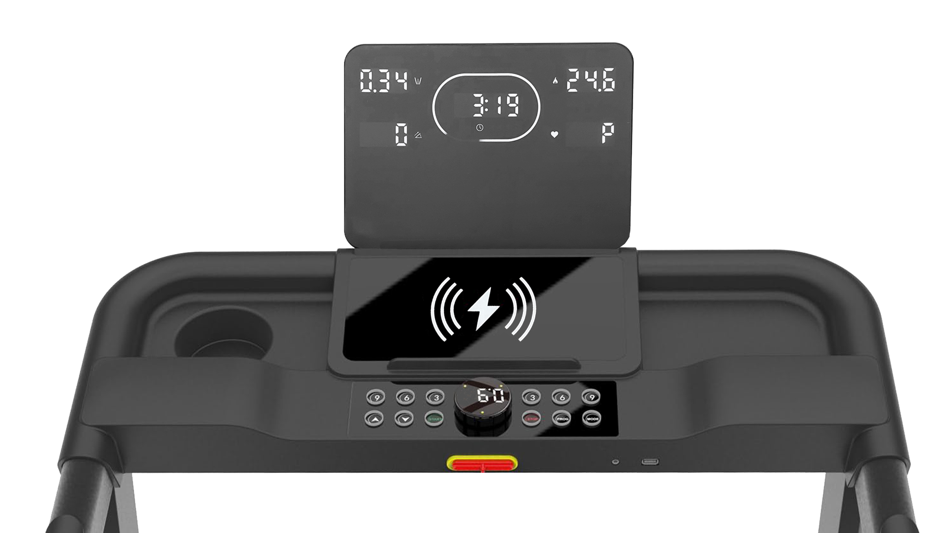 Απολαύστε την άνεση της ασύρματης φόρτισης συμβατών συσκευών και μια βάση tablet για ψυχαγωγία κατά τη διάρκεια των προπονήσεών σας.