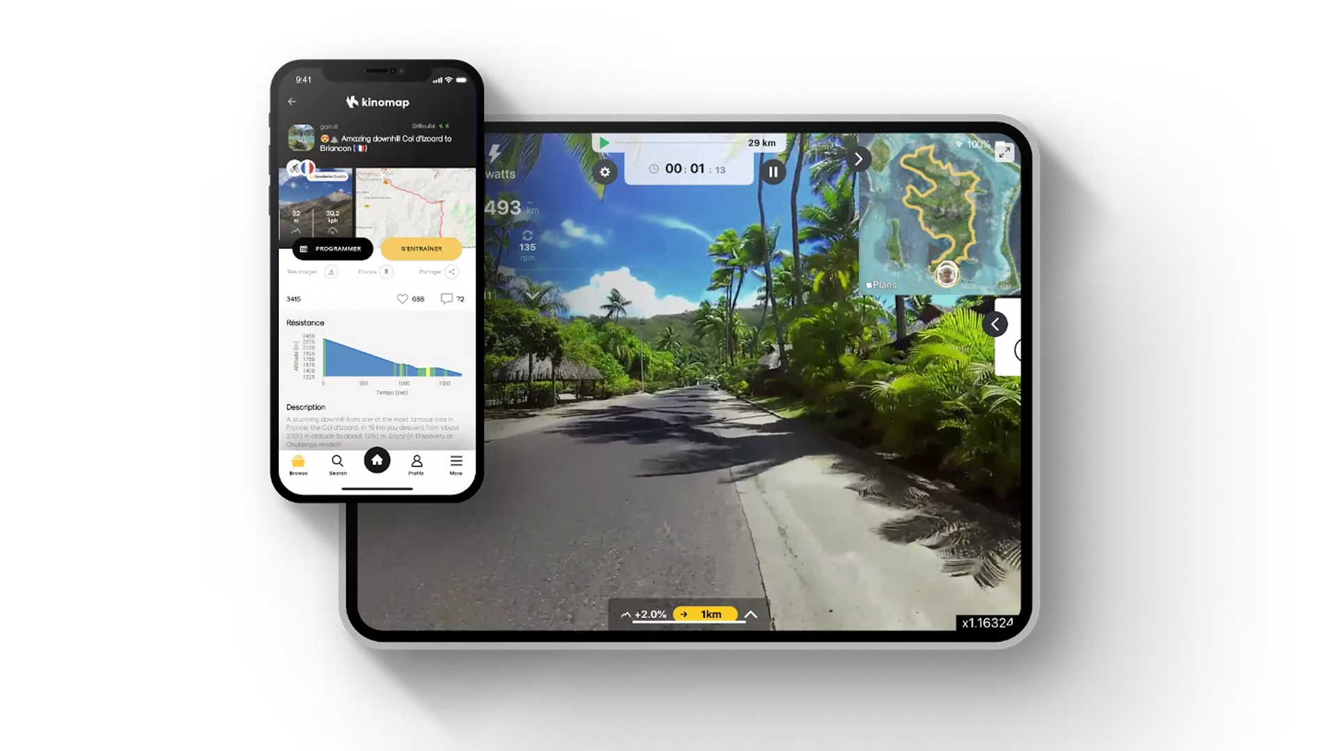 Η εφαρμογή Kinomap κάνει την προπόνηση στο διάδρομο, στο ποδήλατο, στο ελλειπτικό ή στην κωπηλασία σας, πιο διασκεδαστική από ποτέ.Επιλέξτε ένα βίντεο και παρακολουθήστε την κίνησή σας μέσα στο χάρτη επιλεγμένων διαδρομών και των σχετικών βίντεο που τις συνοδεύουν!
